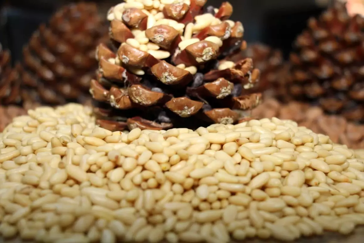 Aydın Çam Fıstığı, coğrafik bölgede yetişen fıstık çamlarının kozalaklarının hasat edildikten sonra kabuğundan ayrılan ve zarından temizlenen, Rengi açık-koyu krem, ucu çok sivri, sivri ucu kirli sarıya yakın ve az dolgun gövdeli bir meyvedir. Kabuksuz olarak piyasaya sunulur. – AYDIN