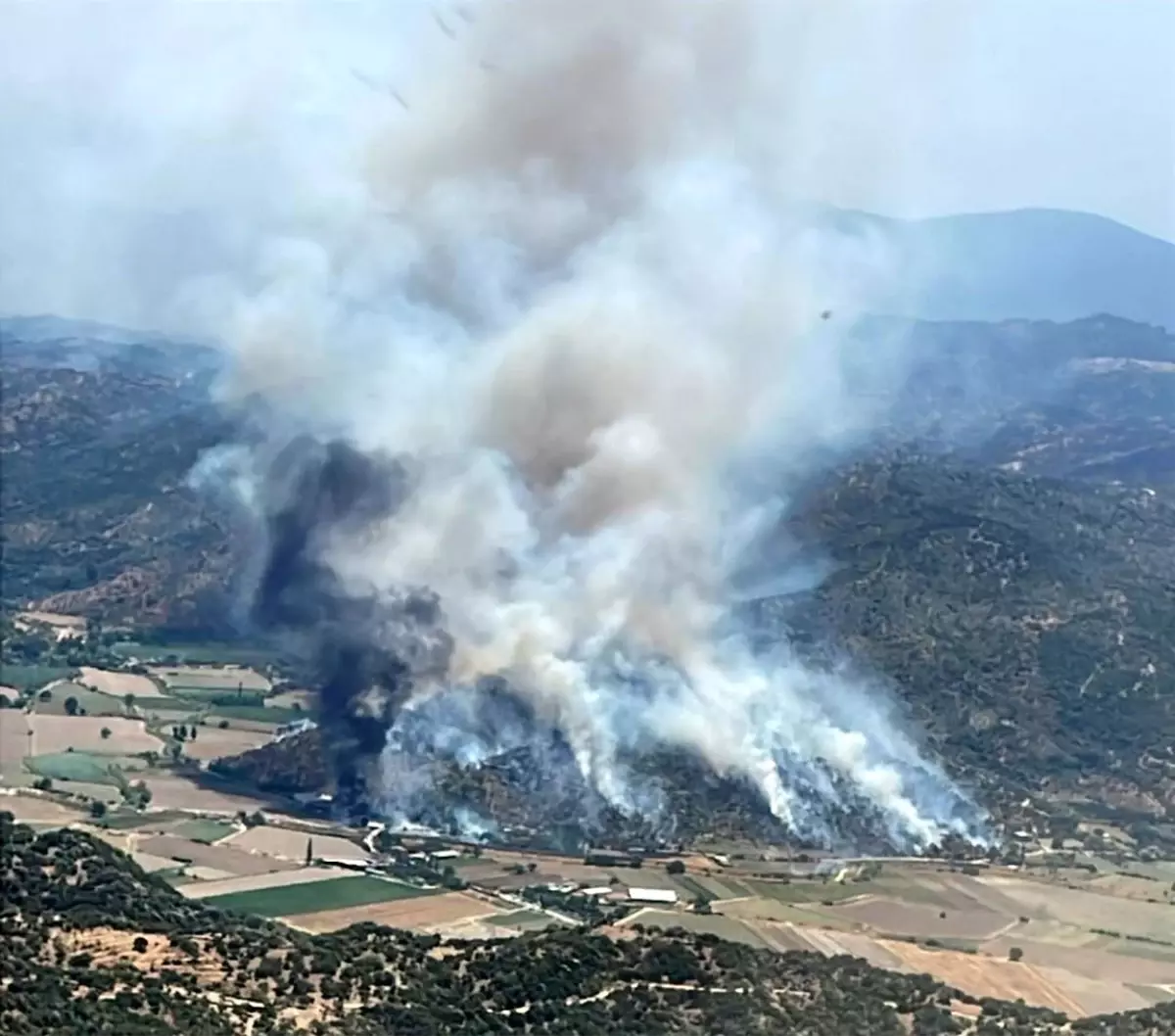 Aydın’ın Söke ilçesinde zirai alanda çıkan yangına müdahale havadan ve karadan sürüyor.