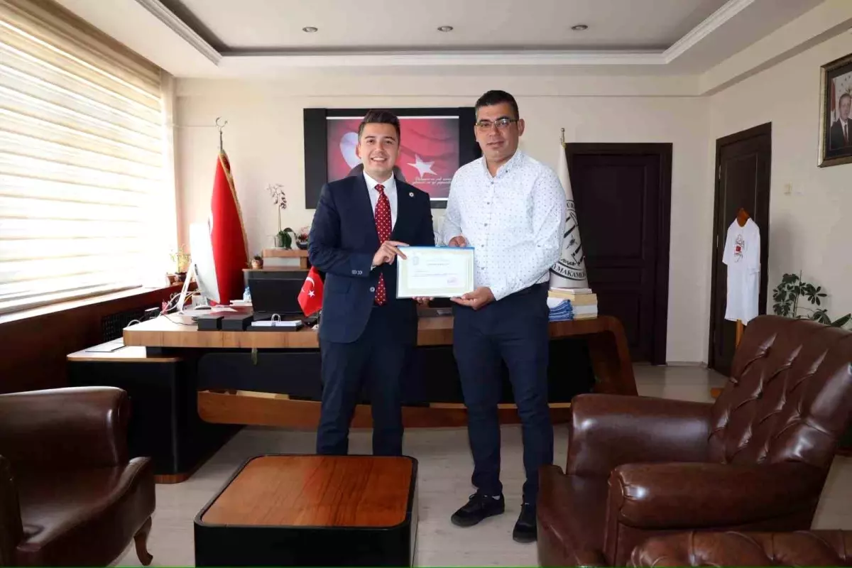 Karacasu Kaymakamı Mehmet Gündoğdu, Bahçeköy Mahalle Muhtarı’nın orman yangınlarına karşı ferdî çabalarıyla oluşturduğu acil müdahale noktaları için kendisine teşekkür dokümanı takdim etti.