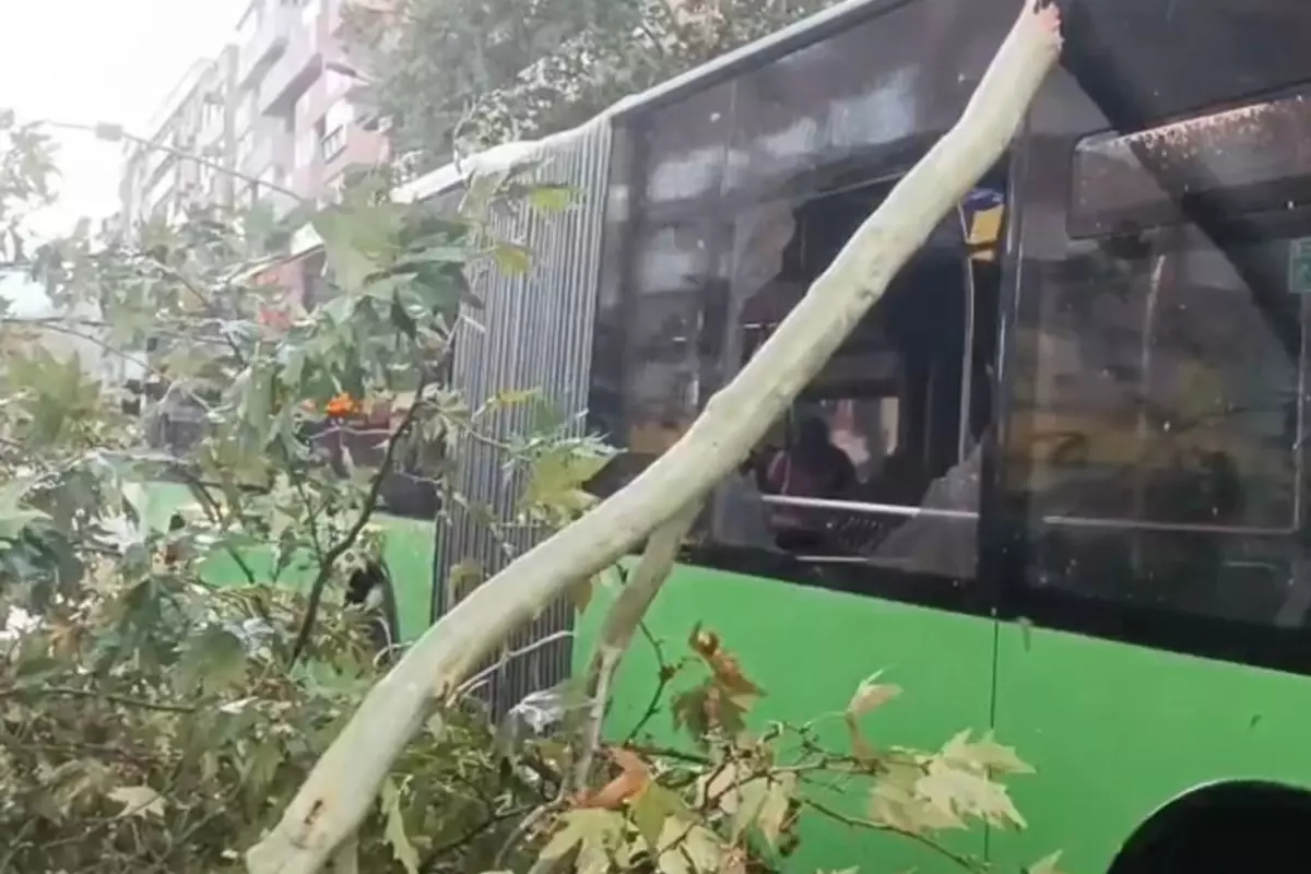 OTOBÜSÜN ÜZERİNE AĞAÇ DEVRİLDİ, FACİADAN DÖNÜLDÜ
