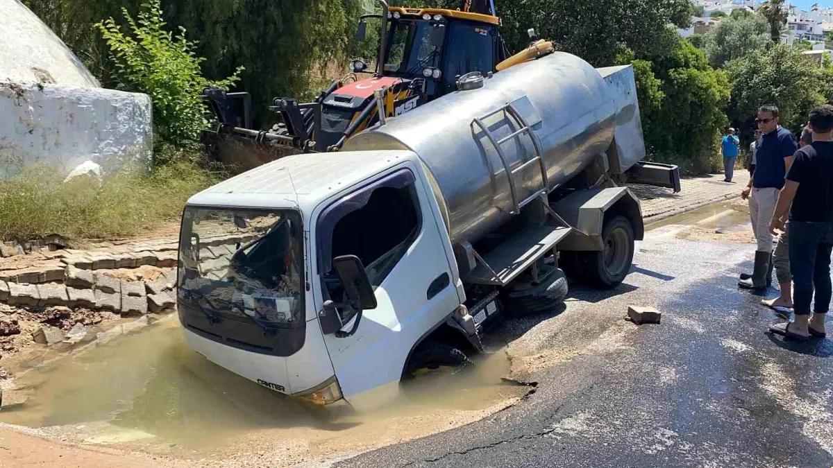Bodrum’da Ana İsale Sınırında Patlama: Tanker Çukura Düştü