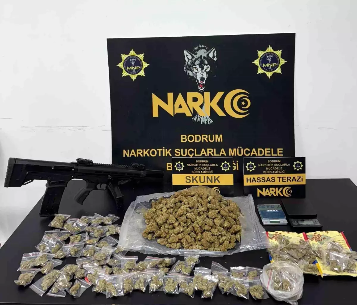 Bodrum Narkotik Kabahatlerle Çaba Ofis Amirliği takımları tarafından uyuşturucu tacirlerine yönelik operasyon yapıldı. Edinilen bilgiye nazaran operasyon kapsamında yapılan ikamet aramasında, 1 kilo 118 gram skunk unsuru, 1 adet evraksız yivsiz av tüfeği, 2 adet hassas terazi ve bin dolar cürümden elde edildiği bedellendirilen para ele geçirildi. Yakalanarak gözaltına alınan 3 kuşkulu şahısda, süreçlerinin akabinde sevk edildiği isimli makamlarca tutuklanarak cezaevine gönderildi. – MUĞLA