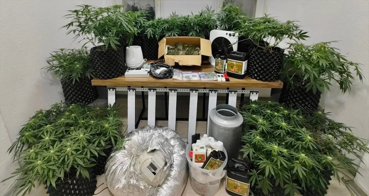Aramalarda, 1.050 gram satışa hazır halde kurutulmuş sentetik uyuşturucu, 1.100 gram likit esrar, 10 gram kokain, 20 kök kenevir bitkisi, 65 modülden oluşan iklimlendirme ve ışık sistemi ve 2 cep telefonu ele geçirildi.