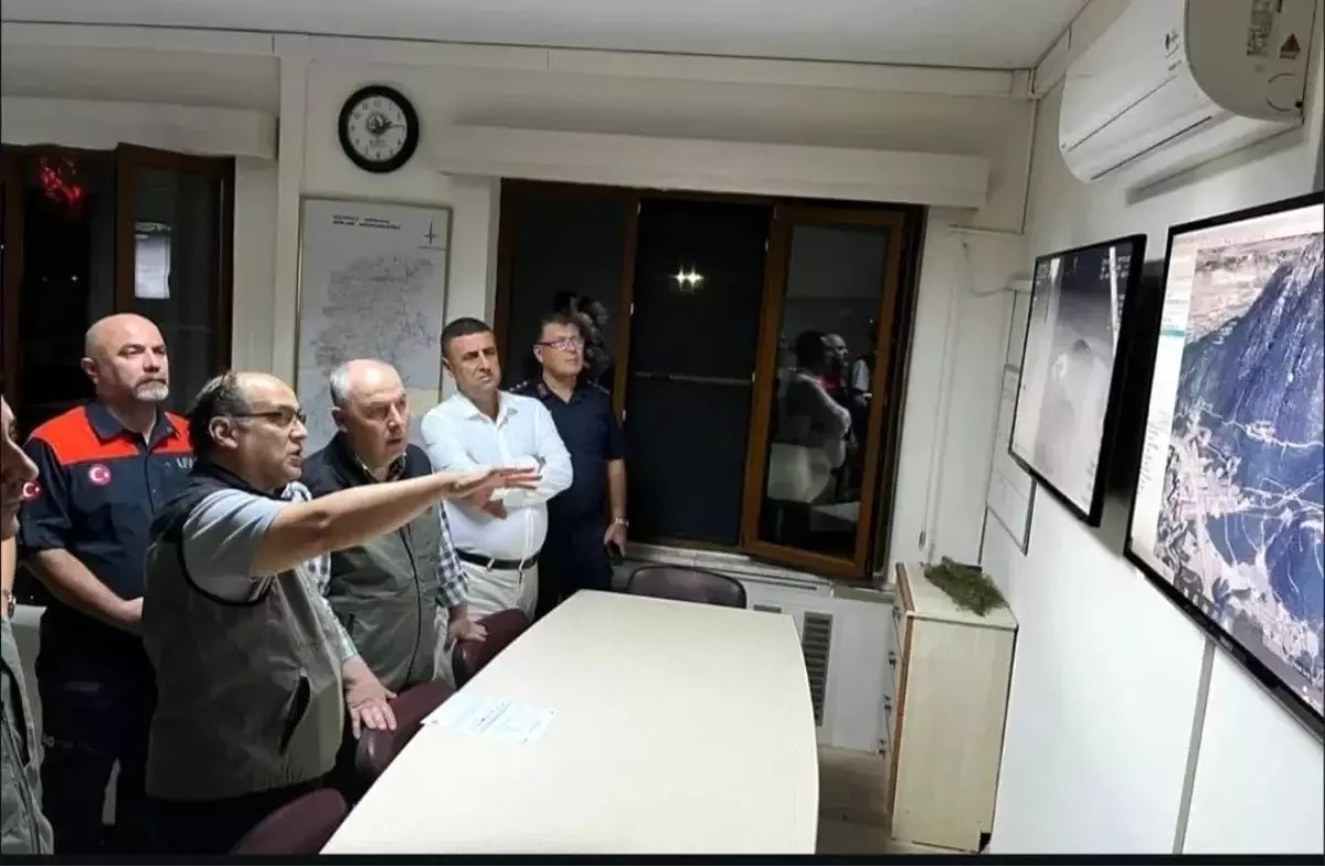 Yangın söndürme çalışmalarını yerinde takip eden Vali Ömer Faruk Coşkun, Denizli Orman Bölge Müdürü Ahmet Köle’den yürütülen çalışmalar hakkında bilgi aldı. Akabinde, Orman Bölge Müdürlüğü Yangın Harekat Merkezine geçen Vali Coşkun, yangının denetim altına alınması için yürütülen çalışmaların uyumu ve kıymetlendirilmesi gayesiyle yangın harekat merkezinde yetkililer ile bir ortaya geldi. – DENİZLİ