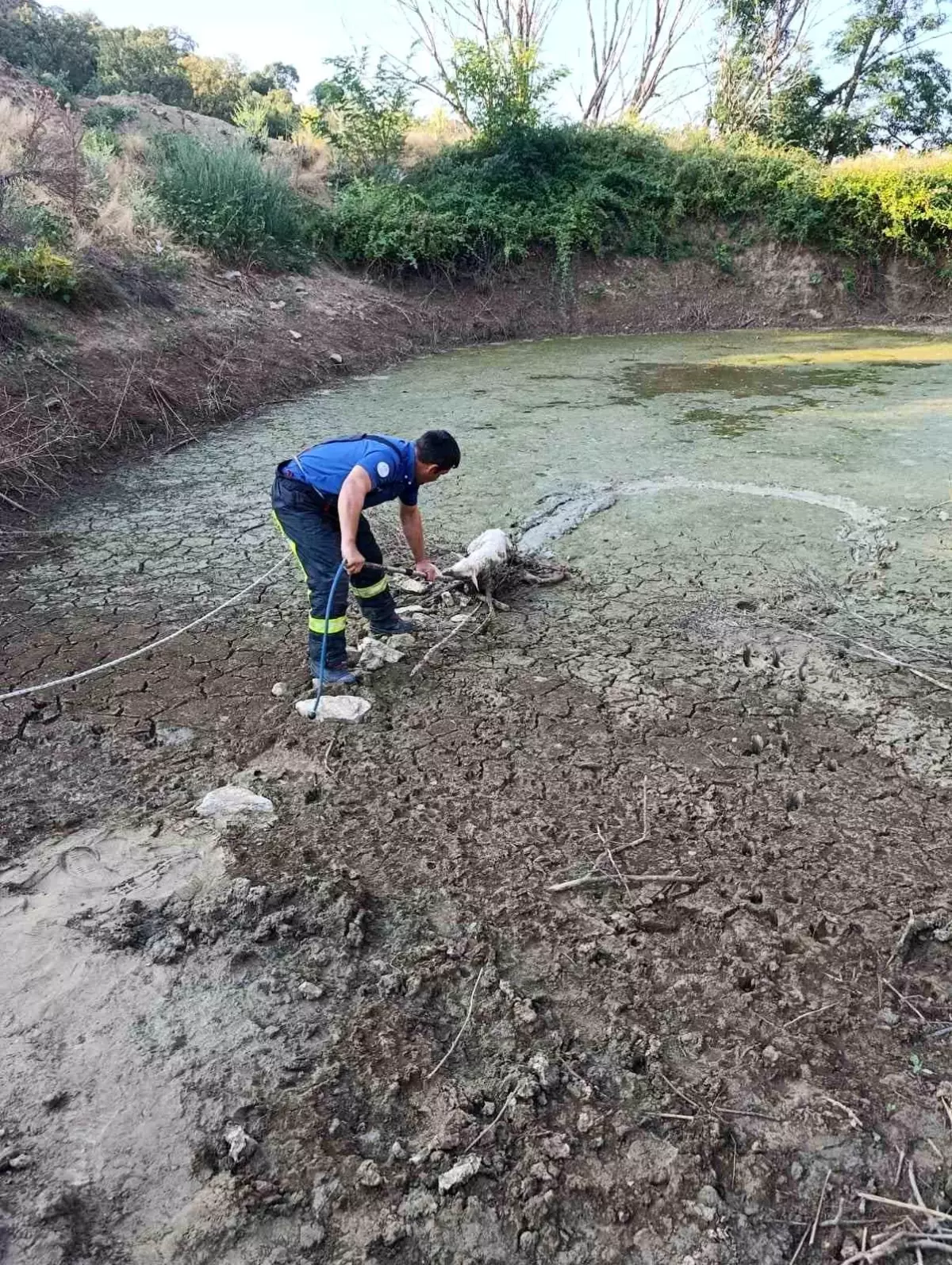 Denizli’nin Güney ilçesinde gölete düşerek balçığa saplanan kuzu kuvvetli bir operasyon sonucu kurtarıldı. Araç giremeyen bölgeye ulaşmak için taş döşeyerek yol açan takımlar, hayvanı sağ salim sahibine teslim etti.