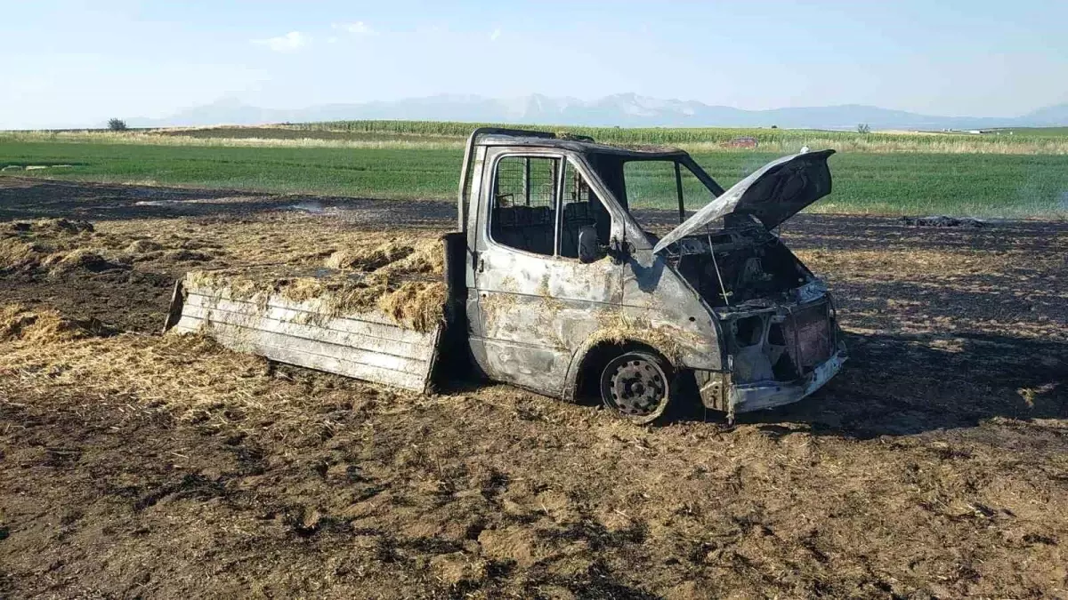Denizli’de Saman Yüklü Kamyonet Alev Alev Yandı