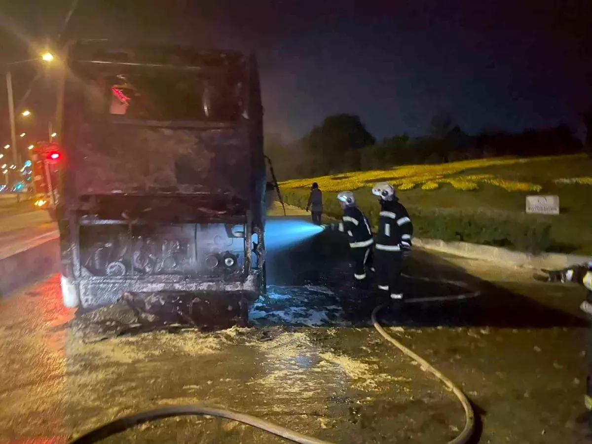 Denizli’de Seyir Halindeki Cins Otobüsü Yandı