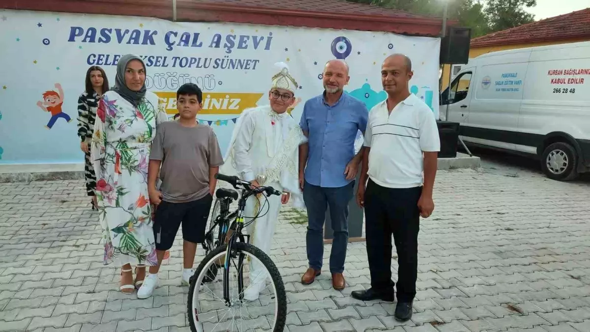 Denizli’nin Çal ilçesinde düzenlenen aktiflikte, 11 çocuk sünnet edildi. Çal İlçe Müftüsü Hüseyin Fatih Bilgiç tarafından yemek duası okunan aktiflikte, sünnet olan çocuklara altın ve bisiklet ikram edildi.