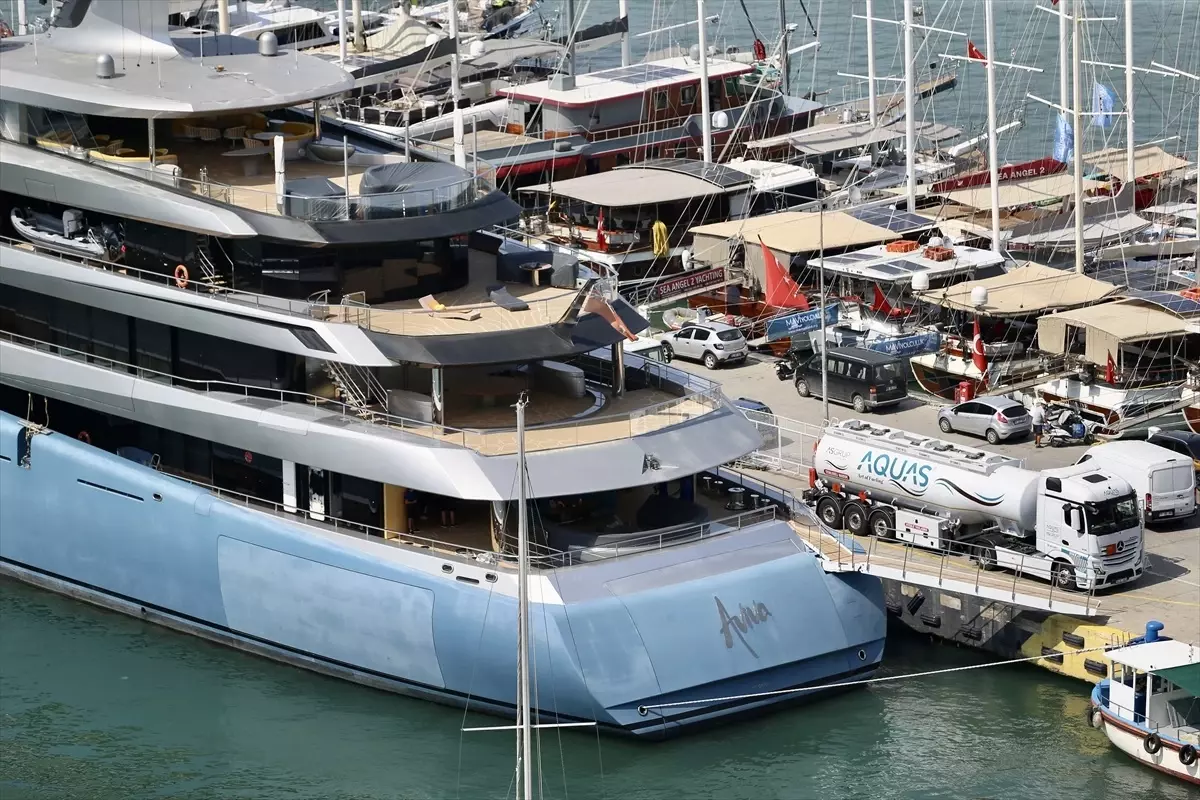 Dünyanın en büyük yatları ortasında gösterilen “Aviva”, yakıt ikmali için Muğla’nın Fethiye ilçesine geldi.