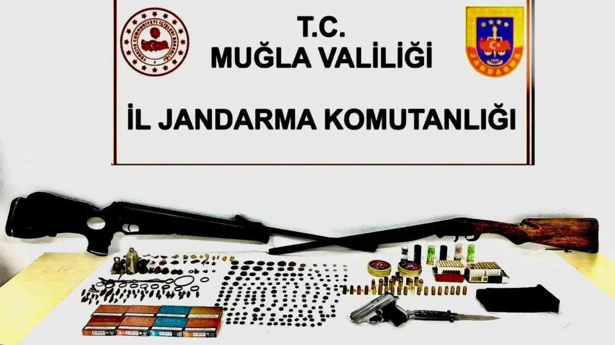 Muğla’da Jandarma Tarihi Eser ve Ruhsatsız Silah Ele Geçirdi
